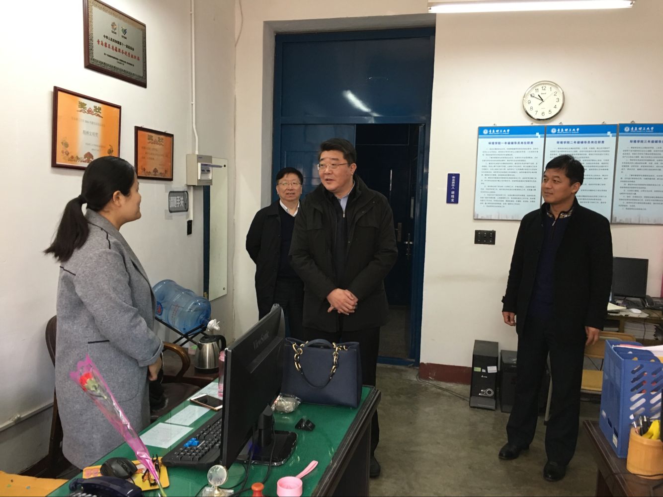 2017年3月8日上午,在第107个“三八”国际劳动妇女节到来之际。王亚军校长专程来到环境学院看望慰问学院女教工,党办校办主任张英杰陪同。