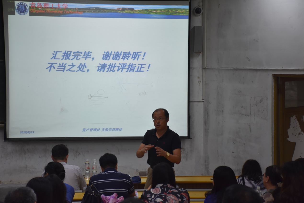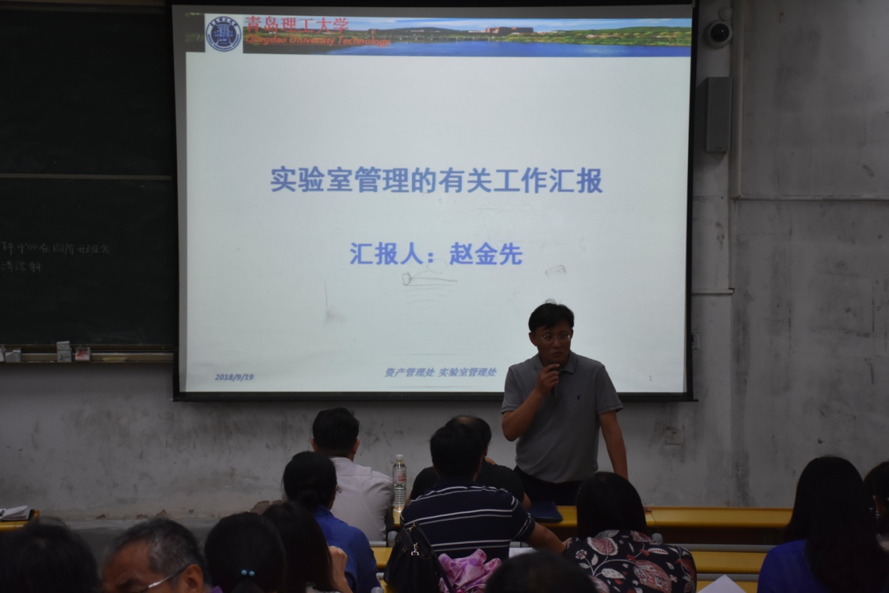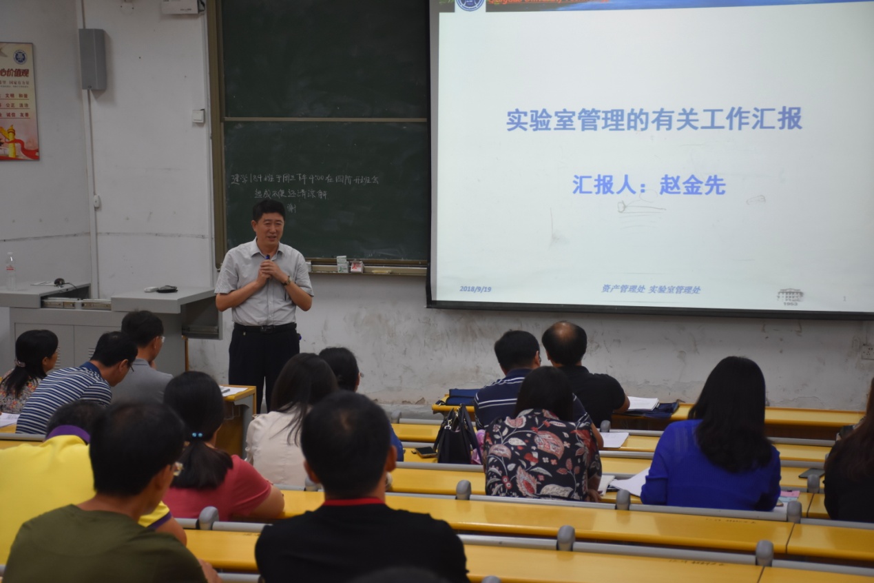 赵金先处长分别从实验室管理大事记、实验室管理处职责、实验室管理构想和实验室安全检查四个方面,讲解了我校实验室管理的相关工作。传达了省教育厅《关于开展2018年度高等学校科研实验室安全检查工作的通知》精神,逐条重点解读了《永利3044集团官网实验室安全检查项目表》中的检查项目。