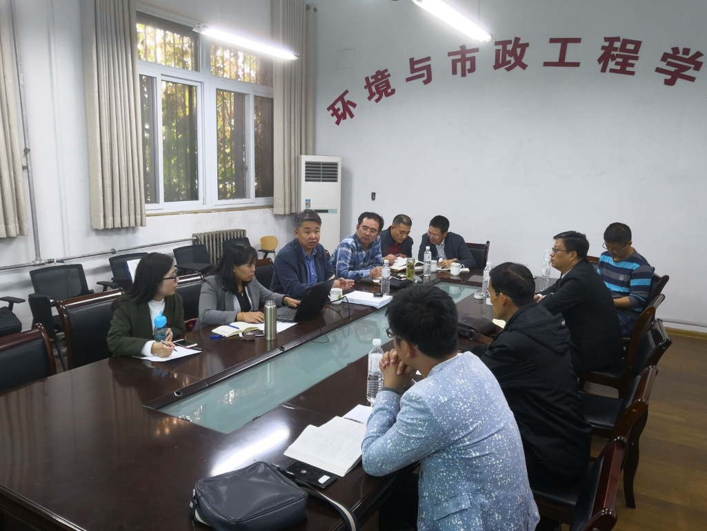 刘长青副院长对姜培刚处长一行的到来表示热烈欢迎,并简要介绍了环境与市政工程学院学位点评估工作的进展情况。随后环境科学与工程系副主任徐爱玲副教授详细介绍了环境科学与工程及环境工程两个学位点的评估材料准备情况。