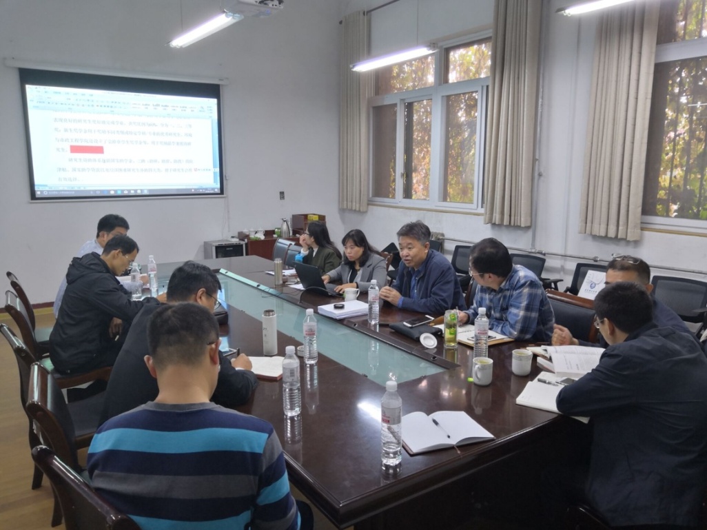 姜培刚处长一行细致审阅了学位点评估的相关资料,并与老师们进行了交流座谈。围绕评估材料中的人才培养特色、学科方向凝练、课程体系建设、师资队伍建设、科研水平提升及评估材料组织等方面提出了建设性的意见和建议。姜培刚处长认为,两个硕士点的评估材料已较为完善,但仍需要根据学科博士点申报的标准进一步深刻领会合格评估相关文件的要求,准确把握学科定位,严格按照学校评估方案统筹规划好评估及整改工作,不断推进学科建设内涵式发展,真正做到以评促建。