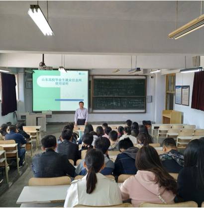 随后,胡现龙老师结合山东省高校毕业生就业信息网,从就业信息网的注册及登陆、简历制作、网上求职、网上签约、业务申请等流程,为到场学生做了详细讲解。
