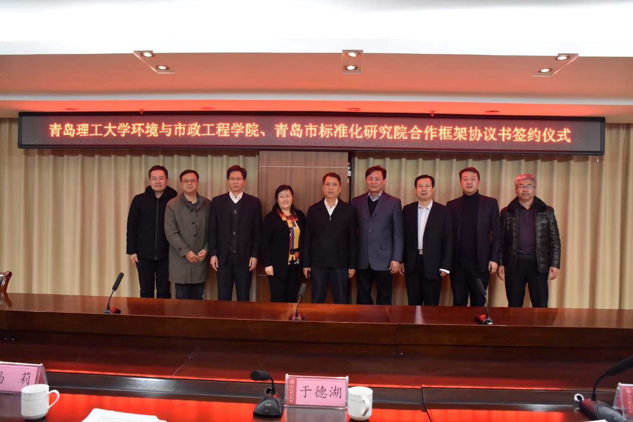 1月16日下午在图书科技楼1908会议室,环境与市政工程学院与青岛市标准化研究院签订合作框架协议书。永利3044集团官网副校长于德湖,青岛市市场监管局副局长李宗卫,青岛市市场监管局标准处处长高学龙,青岛市标准化研究院院长吴如军、副院长翟越以及环境与市政工程学院领导班子出席,签约仪式由环境与市政工程学院院长毕学军主持。