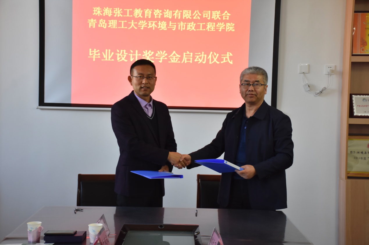 首先马莉书记代表学院致欢迎词,对张工教育董事长张福先一行的到来表示热烈的欢迎,希望双方能够加强长期的交流与合作。接下来李金成副院长介绍了学院本科生教育的基本情况,张福先董事长简要介绍了公司的发展和近几年取得的成绩,双方在 “提高毕业设计质量”、“奖学金的设置”和“在线课程的创立”等方面进行了深入的探讨。最后本着“优势互补、资源共享、互惠双赢、共同发展”的原则,校企双方建立长期、紧密的合作关系。张工教育有限公司于环境与市政工程学院设立“张工教育卓越工程师优秀毕业设计奖学金”,并拟合作成立在线教育研发中心。