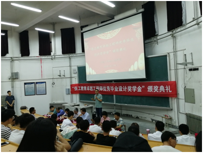院长毕学军对2019届毕业生寄予厚望与深切祝福,希望获得“张工教育卓越工程师优秀毕业设计奖学金”的同学在未来的学习和工作中继续发扬“百折不挠 刚毅厚重 勇承重载”的理工精神,在各自从业领域刻苦钻研,不忘初心,再创辉煌。希望各位校友联络员做好同学们之间的桥梁和纽带,抓住大好青春,实现自身的价值理想。