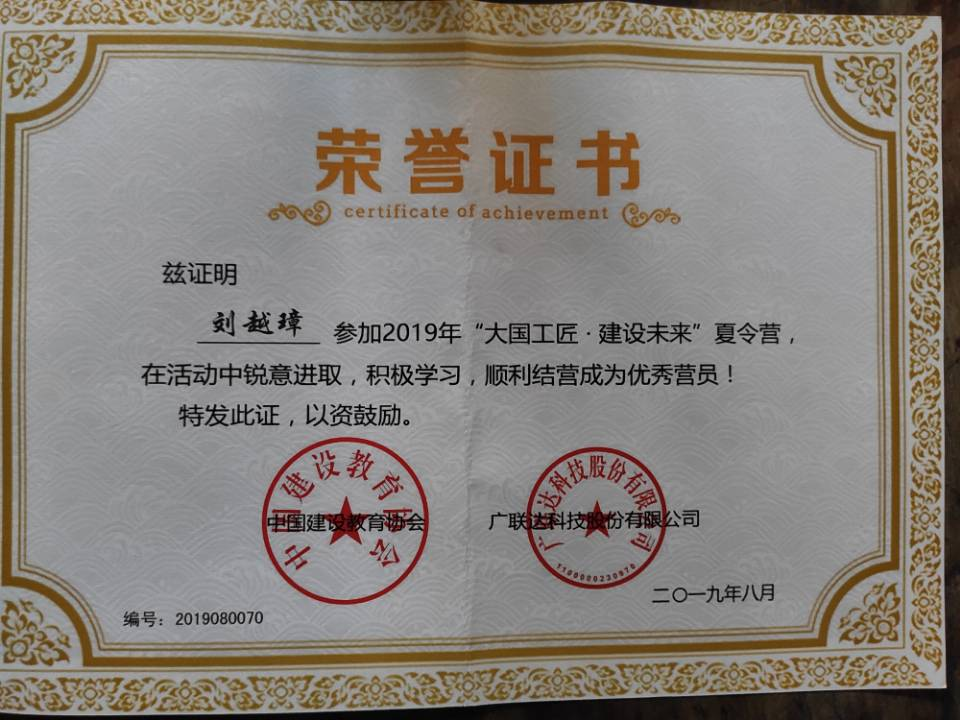 7月26日至8月4日,由中国建设教育协会主办,针对建筑类院校师生开展的2019年“大国工匠·建设未来”夏令营活动在贵阳和重庆举行。我校环境与市政工程学院辅导员教师董业硕和给排水科学与工程专业174班刘越璋同学参加了夏令营活动,并均获得“优秀营员”称号。