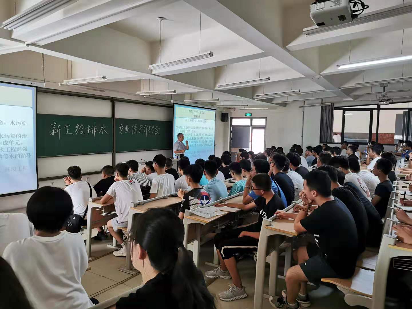 今年是环境学院新生先期安排到新校区报到,为做好新生的大学第一课——专业介绍,环境与市政工程学院精心安排,认真组织,安排各专业的骨干教师集中于9月8日在嘉陵江路校区主教学楼举办了各专业2019级新生专业介绍会。学院副院长李金成、孙英杰、建环专业系主任王海英、刘龙和能动专业系主任周恩泽分别对各自专业进行了内容生动的介绍,全体2019级新生参加了介绍会。