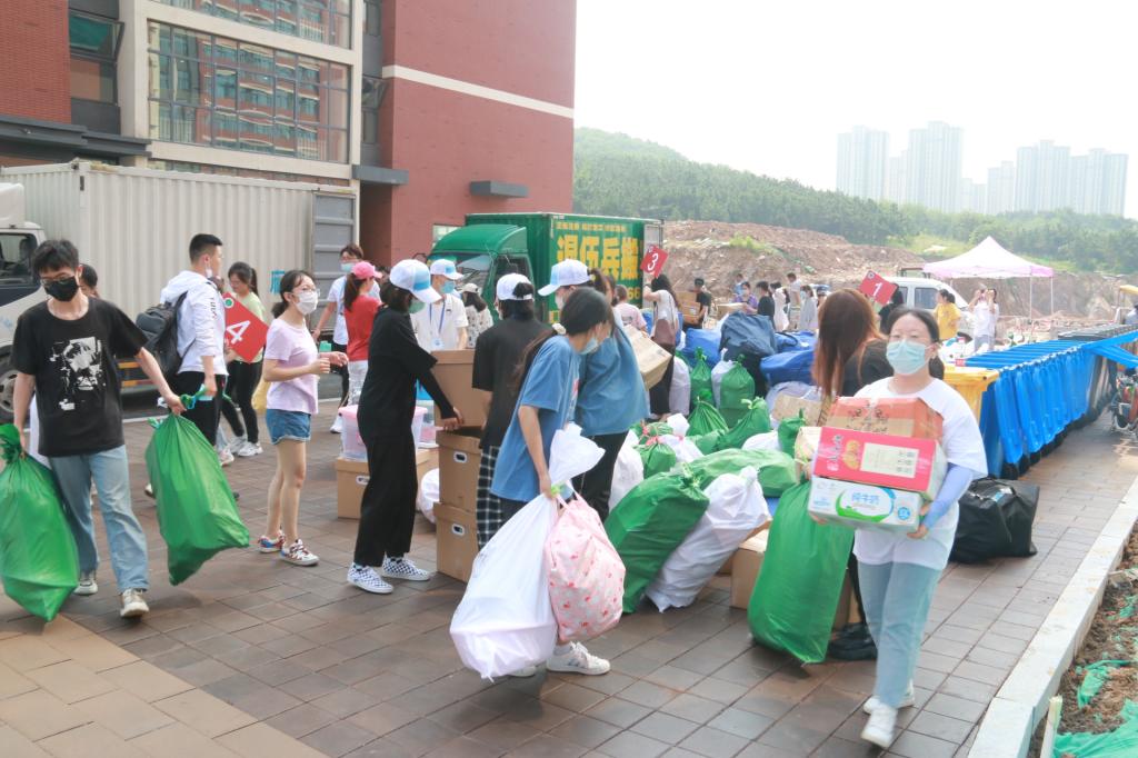 搬迁现场19级志愿者们还打出温暖标语欢迎18级学长,体现了环境与市政工程学院大家庭的友爱氛围。校团委选派大批志愿者为搬迁学生提供帮助,他们运用丰富的经验为搬迁学生提供了优质高效的服务。同时设置服务站点,配备足够数量的矿泉水、食物以及防疫用品、避暑用品、医疗用品等,方便同学们在忙碌之余到服务站加油补劲。