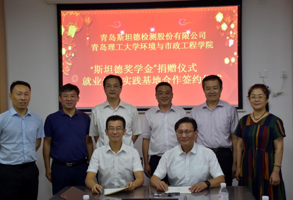 9月29日上午,环境与市政工程学院与青岛斯坦德检测股份有限公司在一教214会议室举行“斯坦德奖学金”捐赠和就业创业实践基地签约仪式。青岛斯坦德检测股份有限公司常务副总裁张威、副总裁李栋、生态环境事业群总经理陈海滨、综合中心总监梁佳,学校合作发展处副处长张国昌,环境与市政工程学院领导班子相关成员参加仪式。仪式由环境与市政工程学院长毕学军教授主持。