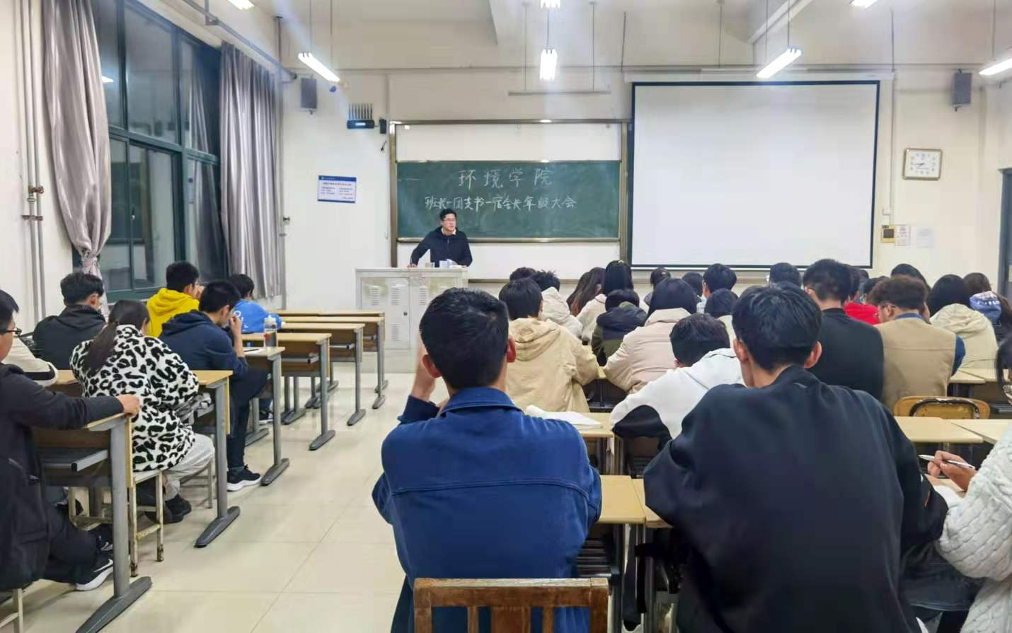 为进一步推进各班学习生活等相关工作开展,优化学生学习、生活环境,环境与市政工程学院于11月17日在嘉陵江路校区教学楼B108召开班长-团支书-宿舍长年级大会。此次会议由董业硕老师和宫克菲老师主讲,2020级各班班长、团支书以及宿舍长参会。