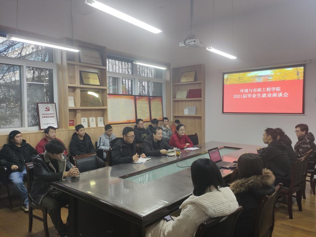12月17日,环境与市政工程学院在市北校区1号教学楼214会议室召开2021届相关专业毕业生就业指导座谈会。学院党总支副书记邵长飞、17级辅导员花会娟、王登榜以及2021届环工、环科、建环、能动专业毕业生代表参加会议,重点就省外生源未就业同学进行分专业指导。