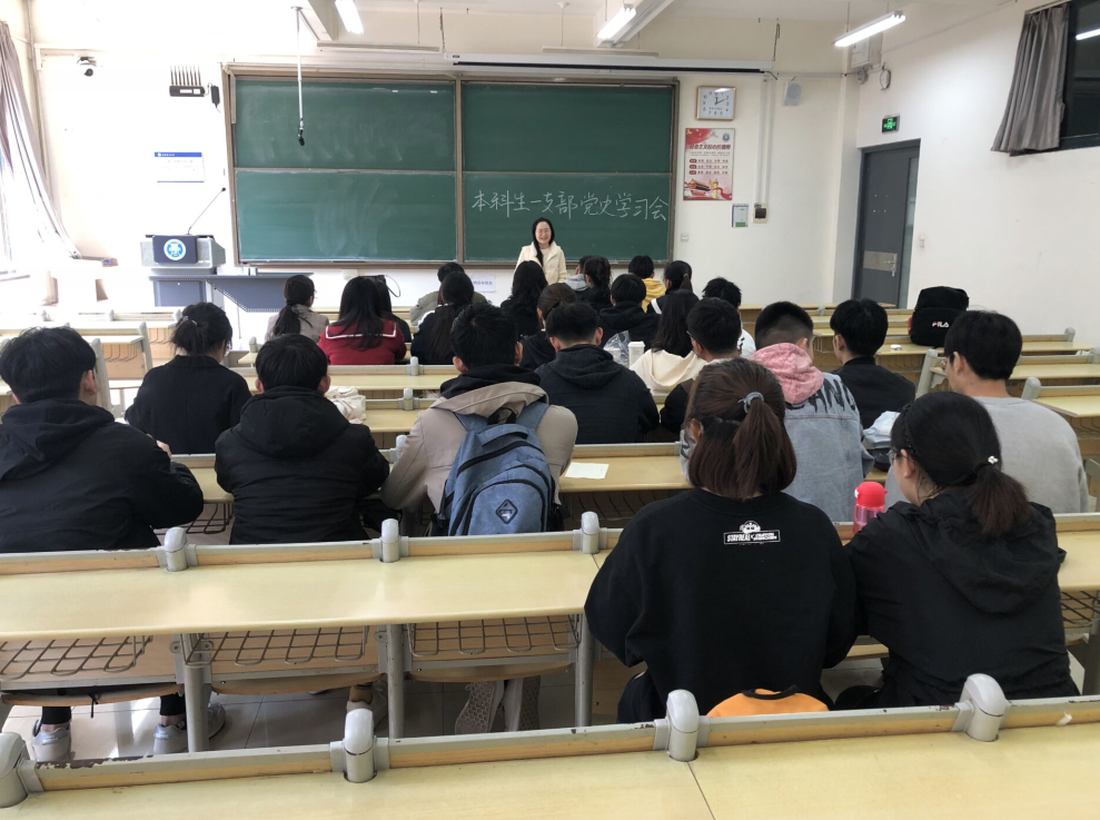 为扎实推进党史学习教育,4月7日,环境与市政工程学院本科生一支部于嘉陵江路校区1号教学楼B207召开党史学习会。会议由一支部书记郑春英主持,一支部全体师生党员参会。