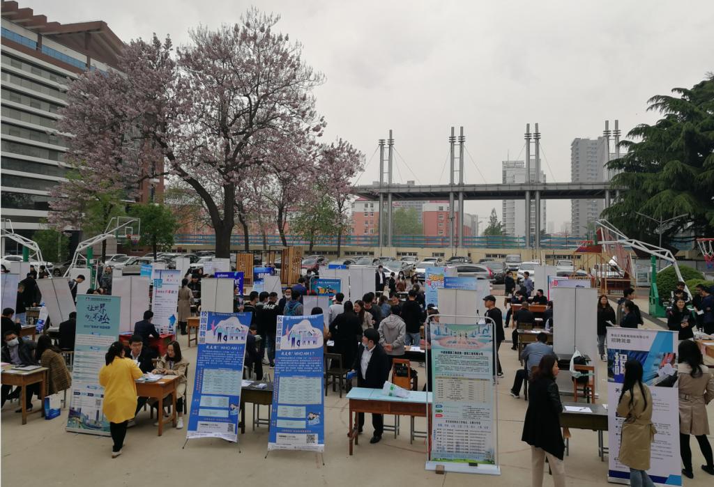 为推进党史学习教育和办实事开新局,在学生处、保卫处、后勤处等相关部门的大力支持下,4月29日上午,土木环境2021届毕业生双选会在市北校区南院篮球场成功举办,土木工程学院、环境与市政工程学院的2021届毕业生们参加了招聘会。