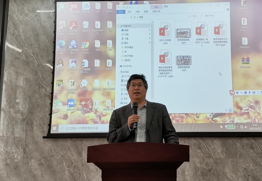 首先,教务处处长苗吉军教授致辞。苗处长强调,新时代背景下国家高度重视人才培养和教学工作,作为大学教师要明确教学与科研的关系,切实把本科教学放到重要位置,从教材、教研教改项目、教研教改论文和教研教改成果四方面着手,做好长远规划并落细落实。