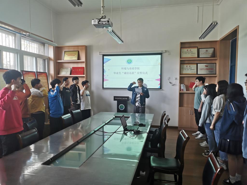 为进一步落实国家助学贷款政策,加强毕业生诚信教育,环境与市政工程学院于5月18日在市北校区一教214会议室举行了2021届贷款毕业生诚信还款宣誓仪式。毕业班辅导员王登榜以及2017级贷款毕业生参加会议。