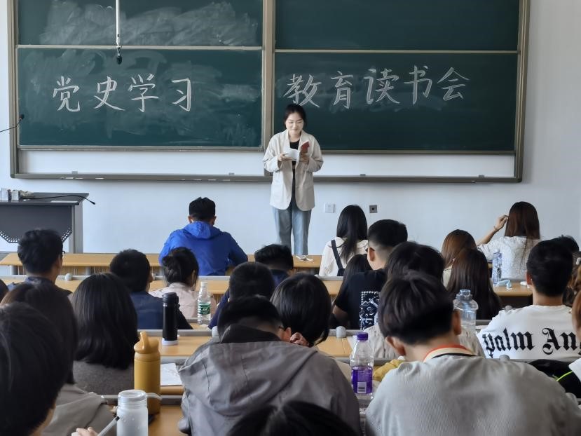 首先,张恬宣布“学习百年党史、赓续红色血脉、凝集奋进力量”党团共建活动正式开始,并率先带领大家进行党史内容的学习。并为各团支部发放了学校和学院购买的《新中国极简史》和《中国共产党简史》。她强调:学史明理,青年学生们要坚持从实际出发,崇尚科学,追求真理,学习专业知识,打基础,求创新;探究奋斗精神,“少年进步则国进步”,广大青年要传承红色基因,激扬青春梦想;务求实效,立足实际,确实为同学办实事、解难题。各团支部要积极动员向党支部学习,及时组织本支部进行党史学习。