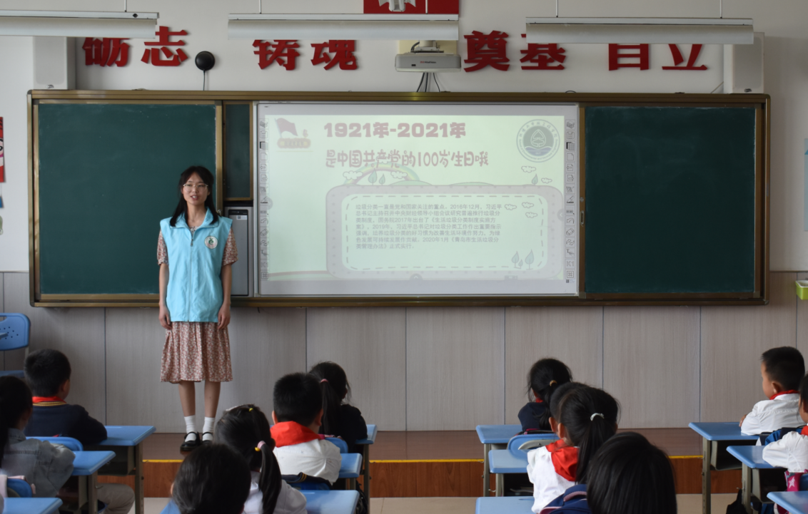 为庆建党一百周年,倡导引领绿色生活理念,提高环境保护意识,践行垃圾分类理念,环境与市政工程学院环保协会于5月25日在青岛市黄岛区超银小学组织开展了环保进校园垃圾分类宣讲活动。学院学工办主任兼团委书记张恬老师,环保协会指导老师郑春英、会长刘子源、成员商昊洋与郑昌萍及青岛市黄岛区超银小学师生参加了本次活动。