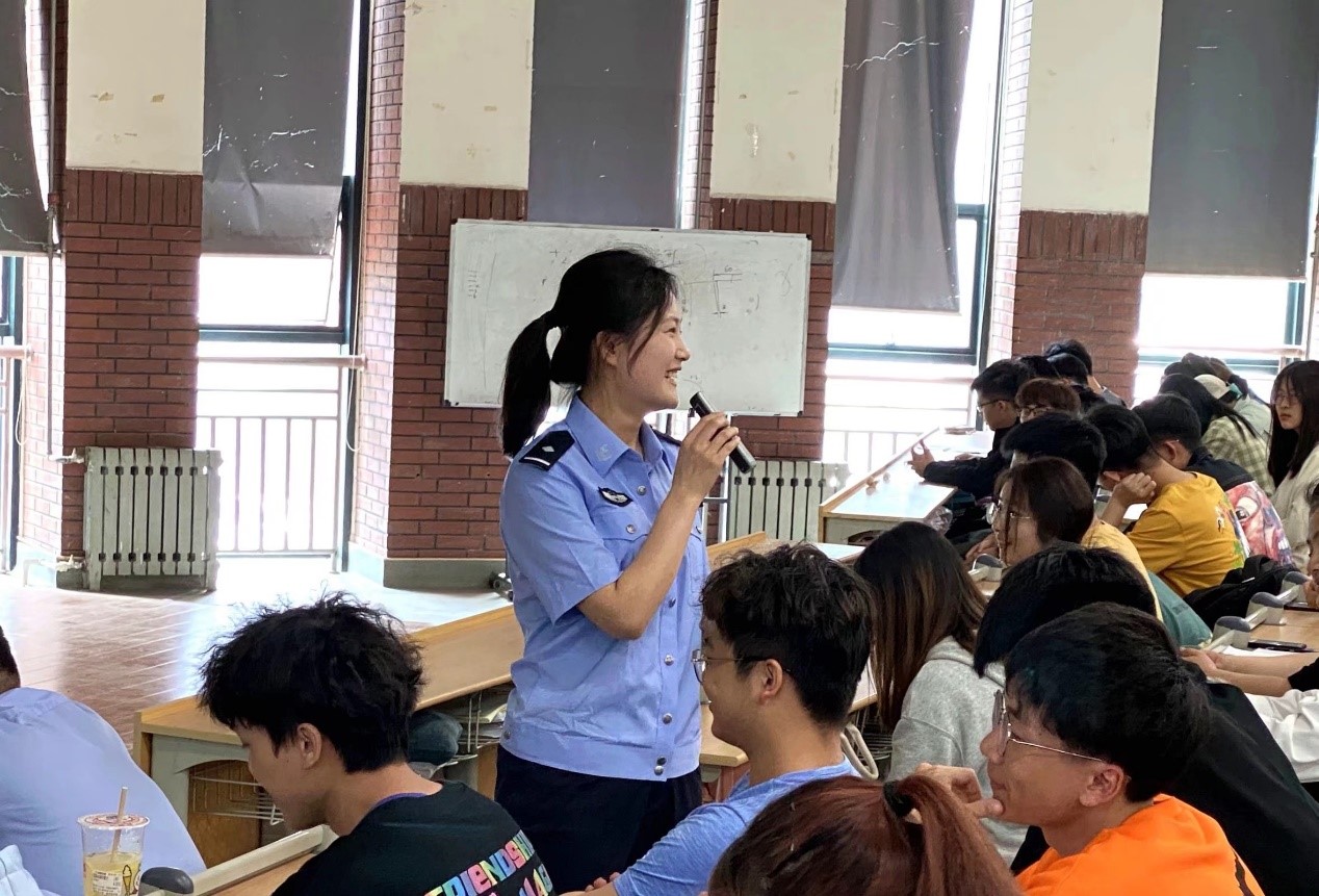 会上,胡铭警官结合电信诈骗具体案例,以诙谐幽默的语言向同学们讲解了什么是电信诈骗、电信诈骗的常见形式、电信诈骗的辨别方法以及被骗后的补救措施。她强调,网络兼职刷单、刷信誉是大学生最易上当的诈骗形式,在面对此类骗局时我们应时刻保持警惕,不贪图蝇头小利,坚信“天上不会掉馅饼”,冷静理智,正确判断避免上当受骗。同时,警官们还为同学们宣传了反诈预警“金钟罩”系统,希望借此可以实现对注册同学们及其添加的最多8名家人实时进行精准的防诈骗保护。