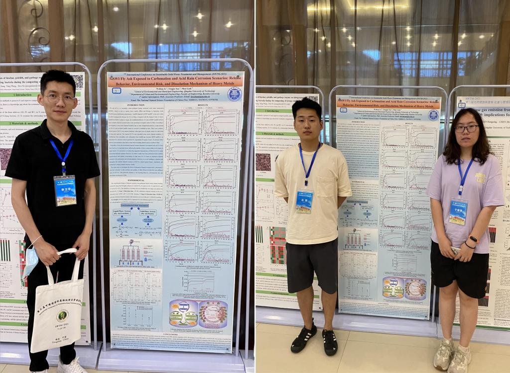 会议邀请了世界各地在有机废弃物制备生物能源、燃料和化学品/生物化学品、矿业固体废物的生物处理与资源回收、固体废弃物好氧堆肥及污染控制、有机废弃物制备生物炭及其应用、城市固体废物的资源化处理和纳米技术及其在固体废物处理中的应用等方面有突出贡献的科学家、工程师和行业专家进行专题报告及交流。我校代表李卫华副教授与硕士生谷凯、于倩雯,卞荣星副教授与硕士生陈纪宏分别做了题为“MSWI Fly Ash Exposed to Carbonation and Acid Rain Corrosion Scenarios: Release Behavior, Environmental Risk, and Dissolution Mechanism of Heavy Metals”、“Greenhouse gas emission from waste sectors in China during 2006-2019: implications for carbon peak and neutrality”的Poster展示。