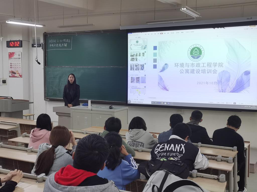 为进一步加强宿舍文明与安全建设,促进学院公寓工作顺利有序开展,10月13日,环境与市政工程学院于嘉陵江校区一号教学楼B125召开了公寓建设培训会议。辅导员宫克菲主持本次会议,学院全体生活委员和宿舍长参加此次会议。