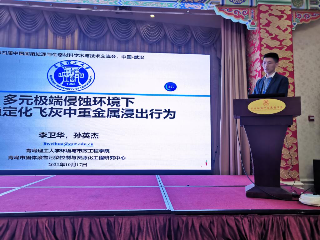 在“碳达峰”与“碳中和”的大背景下,此次会议的举办旨在进一步繁荣我国固废领域的学术交流、展示固废领域的最新学术成果、促进技术合作和成果转化。大会共设有12个分会场,各分会场分别邀请我国固废处理与生态材料各领域有突出贡献的专家学者进行了专题主旨报告及交流。我校孙英杰教授、李卫华副教授受邀作为“生活垃圾和危险固废分会场”报告人,会议期间孙英杰教授受聘中国硅酸盐学会固废与生态材料分会第二届理事会危险废物学术委员会常务委员、李卫华副教授做了题为“多元极端侵蚀环境下填埋稳定化飞灰中重金属浸出行为”的受邀学术报告。