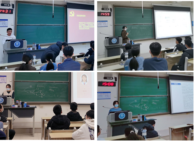 首先,周宝进向大家讲解了党的指导思想、入党流程等方面的内容,还与大家分享了电影“建国三部曲”、书籍等思想教育题材作品。他提出思想学习不止存在于思政政治课上,生活中的时时刻刻都应该去提升自己的思想觉悟,做学习好、思想正、跟党走的新时代大学生。随后,金冰冰从如何撰写论文以及创新创业竞赛两个方面向学弟学妹们传授经验了,她介绍了论文期刊分类等级,回答了同学们关于英文写作的技巧以及论文撰写的相关问题。