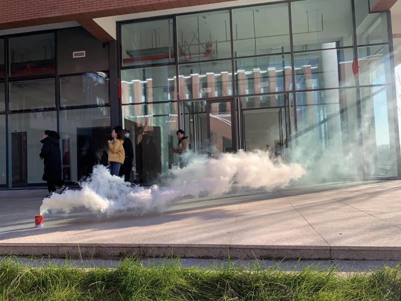 随着消防警报的响起,应急疏散演练正式开始。所有参演师生镇定有序,按照要求迅速由安全通道撤出,低头弯腰通过由人造烟雾模拟的起火区域,疏散到楼外安全地带。