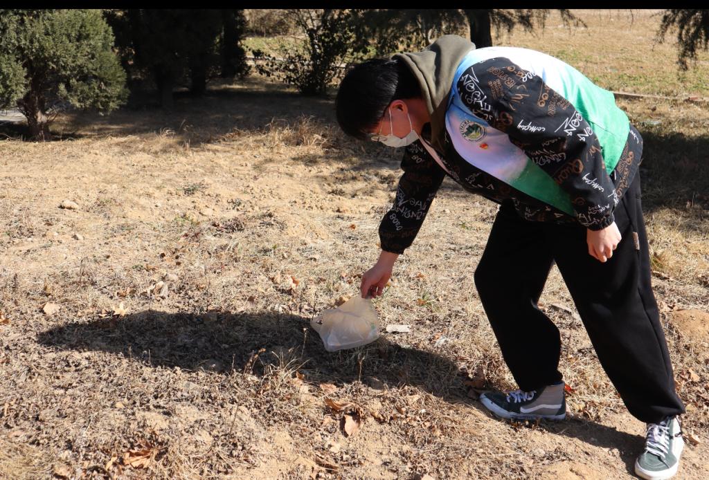 下午,繁星志愿者协会组织同学进行友谊林大清扫,清理树林内的白色垃圾,爱护树木,并且将图书馆门口歪倒的自行车扶正,摆好学校内公用的小黄车,尽自己最大的努力学习雷锋做好事,不遗余力帮助有困难的同学,做一颗为同学服务的“螺丝钉”。