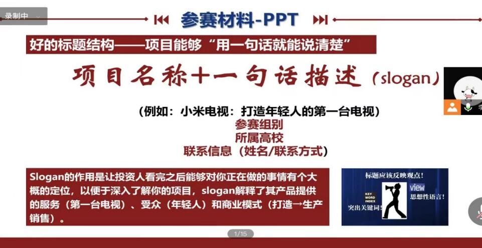 会上,李良洁结合自身担任团队指导老师的工作经历从大赛机制、参赛要求、赛道特点和适用人群等方面概括性地为同学们介绍了中国“互联网+”大学生创新创业大赛。随后,培训从项目行业背景、市场痛点抓取、项目优势展示、财务预测以及融资计划等方面详细讲解商业项目书、PPT的撰写技巧。最后,李良洁结合获奖项目案例就同学们关切的问题做了详细的解答,并欢迎同学们在会后积极与自己讨论与大赛相关问题。