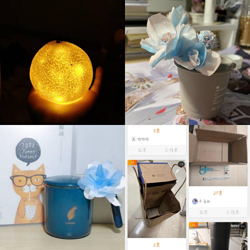 活动过程中,各小组成员一起收集所需的材料,一起动手完成作品。作品题材丰富新颖,其中,春日防卫队的作品——小橘灯,由橘皮制作而成,灯光在内,光芒透过橘皮点点向外,宛若华灯初上十五的圆月般。除此之外,还有利用口罩制作成的永不凋零的口罩之花,简单两步,将一件普通的口罩变为了艺术品,也为生活增添诗意。“变废为宝”作为学院重点打造的特色品牌活动,通过将废旧资源重新利用的形式,进一步增强了同学们的环保意识,提高了同学们动手能力与创新能力,引导学生通过实际行动为环境保护贡献自己的力量。