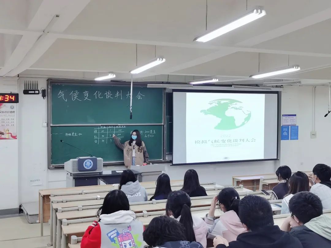 拓展视野,提升环保意识 为拓展专业视野,加强学生对全球气候治理的重要性的认识,提高专业素质和语言表达能力,学院举办联合国气候变化模拟谈判大会,以模拟谈判加游戏的方式,让同学们体验真实谈判现场。活动中,各队队员根据自己国家工厂的各项数值以及总体环境状况,通过队内讨论,表达自己需要收购或抛售工厂的数量和价格;通过与其他代表队谈判,达成自己的目的。随着活动进行,同学们逐渐找到了谈判的思路与技巧,各种“玩法”也被发掘出来,只为自己团队能够在环境和资金权衡利弊并且收获最多的收益。
