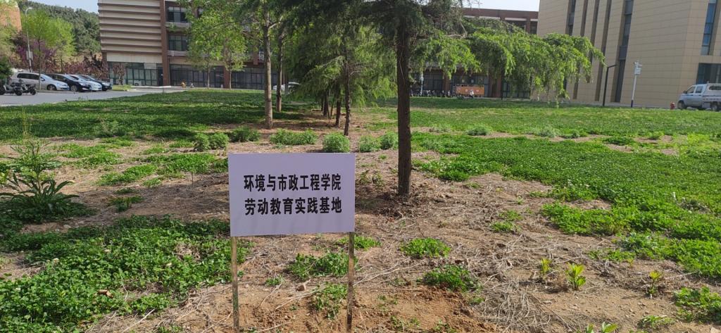 劳动教育实践基地位于中央院系区C2-4 实验楼东侧草坪,该草坪原本是学校基建预留空地,学校后勤管理处结合校园绿化规划和物业工作特点,将这片空地改造成绿色责任区,由环境与市政工程学院2021级学生负责。以班级为单位,17个班级分别认领本班个性化种植责任区,栽种花草。基地教育课程由后勤管理处和环境与市政工程学院选派经验丰富的园艺师和环境工程专业博士生担任“指导老师”,引导同学们通过种植、除草、施肥、浇水、收割等劳动过程完成“接地气”的劳动教育课。