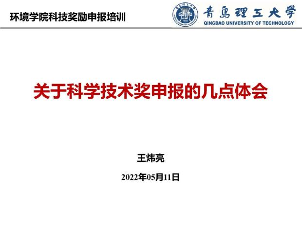 为进一步推动学院科技奖励申报工作,增强教师申报积极性,提高各级各类奖励申报数量和质量,环境与市政工程学院于5月11日举办了“科技奖励申报培训会”。王炜亮教授和张华伟教授主讲,马继平教授主持,学院教师及相关科研人员参加会议。按照防控要求,此次会议采取线上培训的方式进行。