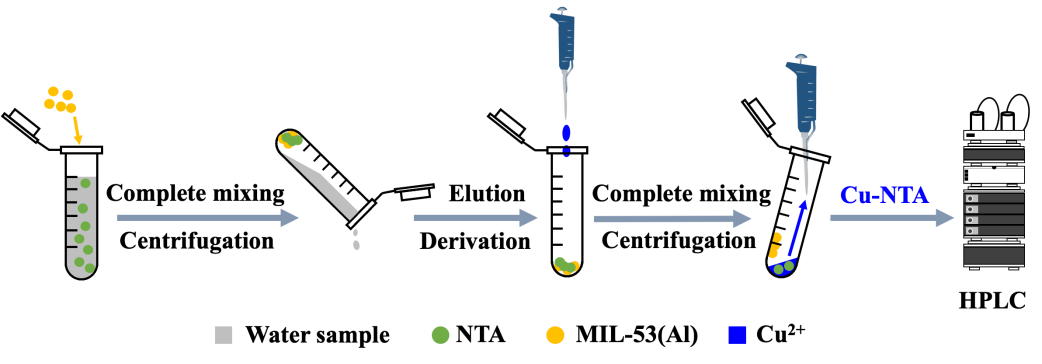 图1. MIL-53(Al)分离富集HPLC分析环境水样中NTA的流程示意图