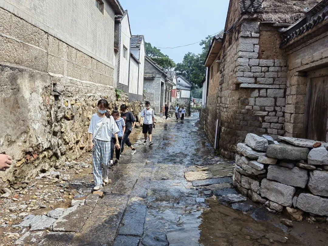 7月13日,实践团队前往朱家峪风景区,感受在三涧溪村的带动下章丘旅游业的发展现状。进入景区,溪水顺着路旁的沟渠而下,最后汇入了山脚的水潭之中,流水声和夏日的蝉鸣一同映衬着这片山村的宁静。朱家峪风景区的主要景点包括山阴小学、朱氏北楼、进士故居、女子学堂等。景区同时鼓励居民开展农家乐,民宿,餐饮等服务,为游客提供优质的服务。通过与当地居民的交谈,我们也了解到旅游业带动了其经济收入,提高了生活质量,