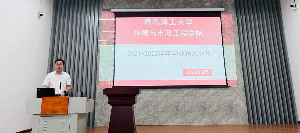 随后环境与市政工程学院党委副书记、副院长隋学智对在校本科生2021-2022学年学业情况进行了分析。分别对2021-2022学年第二学期期末考试情况,2019、2020、2021三个年级本科生不及格存量情况,近三年各类学风数据等进行了分析,从年级、专业、宿舍等多角度横向、纵向进行数据对比与分析,指出了学院学风建设中存在的问题并提出解决办法。
