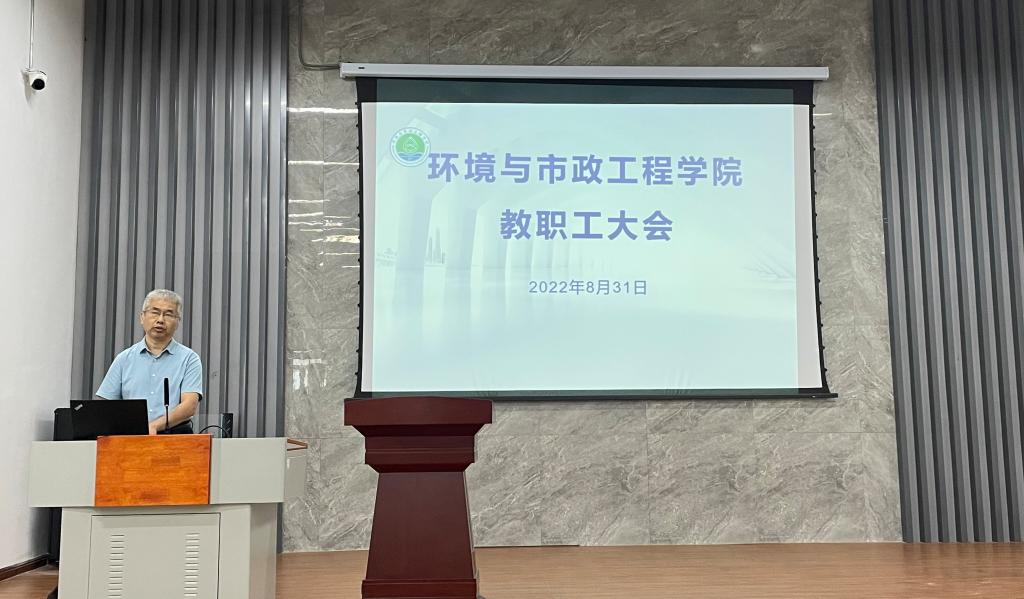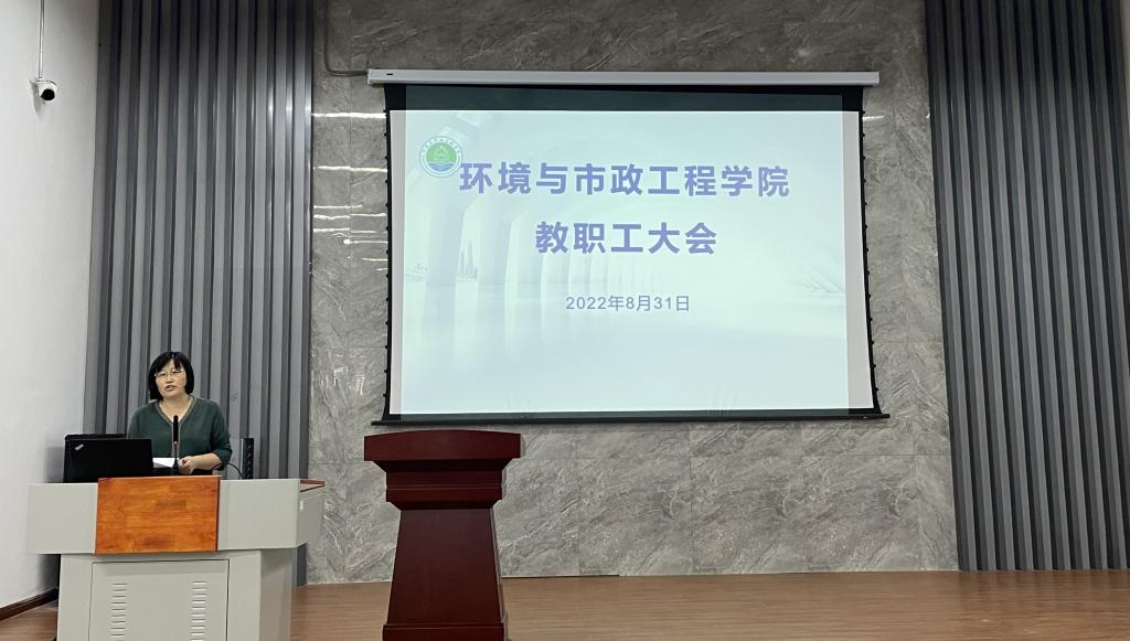 8月31日,环境与市政工程学院于嘉陵江路校区C2-3-G101召开全体教职工大会,会议由环境与市政工程学院党委书记马莉主持,学院全体教职工