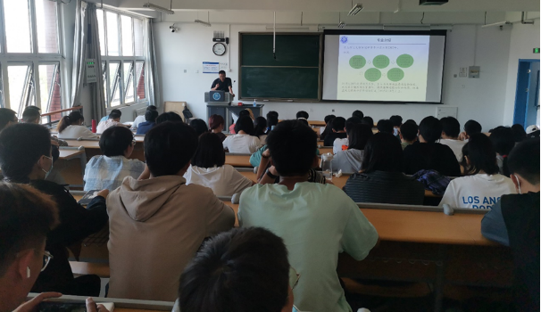陈栋向新同学介绍了专业发展历史、就业去向、招生情况、师资队伍以及毕业要求等,特别对专业的教学目标、考研情况、竞赛情况、就业前景等多方面进行了细致的讲解,加深了同学们对环境科学专业的认知。随后,环境科学系的所有老师一一上台,对同学们大学四年生活进行了指导建议,希望他们做好自己的人生规划、锻炼好身体、加强自律性,充分利用四年的美好时光实现自己的人生价值。(撰稿:陈栋 审核:隋学智、刘龙)