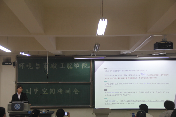 为让同学们尽快熟悉“到梦空间”APP的使用,近日,环境与市政工程学院学生会实践考核部在嘉陵江路校区主教学楼B211教室举办了到梦空间培训会。学院学生会、团委各部门部长、副部长及2022级班长、团支书参与了本次活动。活动由实践部成员付雪新主持,副部长杜宗昊进行具体解读与说明。