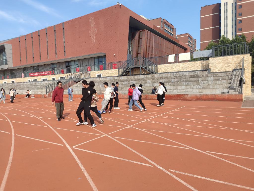 按照疫情防控相关要求,此次运动会分批次进行,但丝毫没有影响同学们参与的热情,现场气氛十分热烈。首先,按照规定时间各班级代表队、裁判员到达指定场地举行开幕式,主持人讲解比赛规则。开幕式结束后,按照《新生趣味运动会秩序册》进行比赛,参赛队员之间团结协作,共同完成背对背夹球跑、摸石过河、五块一毛、环环相扣、你画我猜、“一二三看这边”共计六个趣味项目。赛前,参赛队员们集思广益,共同谋划战术;赛中,他们默契配合,互帮互助。运动会的现场充满青春的激情与朝气,欢声笑语与拼搏竞技充斥着整个操场。辅导员贾婉琦也参与到此次活动当中,与同学们热情互动,一同感受团队合作带来的欢乐。