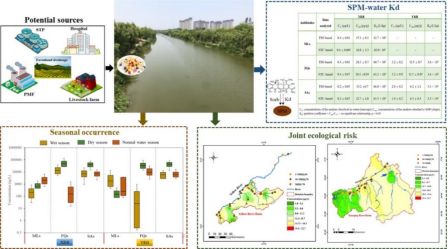 水环境中悬浮固体颗粒物(SPM)是负载抗生素的主要介质,显著影响其污染水平和暴露风险。针对抗生素在水-SPM间如何分配这一问题,研究团队以黄河下游和小清河干支流为对象,探究了四大类45种抗生素污染赋存及其与SPM结合特征。研究结果显示:人口密集和工业发达区域抗生素污染严重,其中喹诺酮类抗生素(FQs)浓度水平最高(~24.8μg/L),磺胺类抗生素(SAs)次之(~15.4μg/L),大环内酯类抗生素(MLs)检出频率均在90%以上,共存情况下可能会对生态环境造成较高的风险;SPM可强烈吸附FQs、SAs和MLs(分配系数Kd=4.2~6.6×104L/kg)从而影响抗生素在水环境中的时空分布,吸附结合能力与SPM理化性质和组成紧密相关。相关研究成果已被环境科学领域Top期刊 Science of the Total Environment接收发表(DOI: 10.1016/j.scitotenv.2022.158579)。