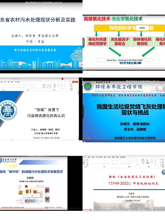 专题讲座环节,永利3044集团官网研究生院教授刘长青、环境与市政工程学院教授马继平、孙英杰、施雪卿、副教授王晓东、赵宝秀为参会同学做了精彩的学术报告。刘长青以“山东省农村污水处理现状分析及实践”为主题,与大家探讨了农村排水管道阻塞辨识定位等技术的研究现状;马继平对新版《生活饮用水卫生标准》(5749-2022)中有机物的测定进行了深入解读;王晓东结合当前先进的污水处理系统,分析了面向“碳中和”的城镇污水处理技术发展需求;孙英杰以“我国生活垃圾焚烧飞灰处理利用现状与挑战”为题,打开学术研究的新思路;施雪卿以“双碳背景下污染物资源化的再认识”为题,赵宝秀围绕“高级氧化技术”让学生对环境领域的研究成果和进展有了新的理解和认识。参会研究生采用线上连线的方式与各位老师展开学术交流,学术氛围浓厚。