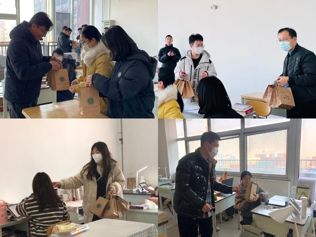 在这凛冽寒冬,老师们逐一将“赋能”盲盒发给考研同学们,叮嘱他们注意保暖加衣,沉着应考、稳扎稳打、坚持到底,用最佳的状态与最好的心态成就最好的自己。