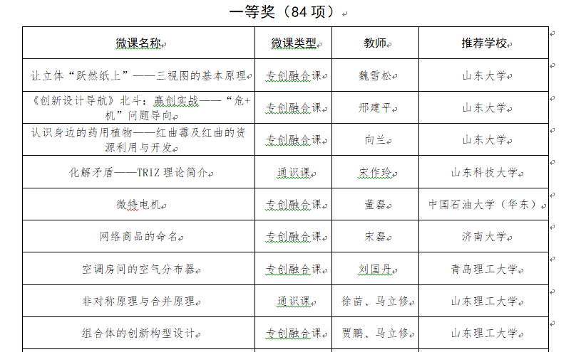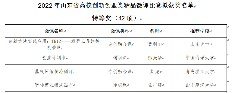 近日,山东省高校创新创业类精品微课比赛结果揭晓,经学校推荐、省教育厅初评和终评,最终评选出特等奖42项,一等奖84项,二等奖131项。我院刘龙老师提交的“蒸气压缩制冷循环”荣获特等奖,刘国丹老师提交的“空调房间的空气分布器”荣获一等奖。