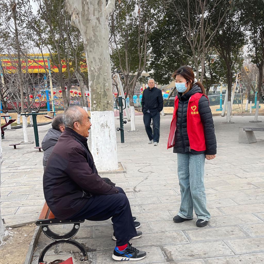 2月8日上午,李媛媛在嘉祥文化馆附近向群聚的老人们推广普通话,和大家一起进行绕口令练习,并为他们纠正了舌尖音“z、c、s”与翘舌音“zh、ch、sh”的混淆音。汉语是中华传统文化的精华,也是古代人民智慧的结晶,不仅仅是年轻人,生活中的每个人都应有从“会说普通话”到“说好普通话”的意识,赓续文化力量。