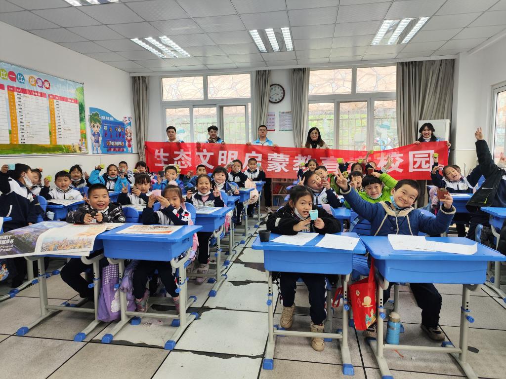 在学雷锋纪念日、植树节到来之际,“净蓝”生态文明启蒙宣讲团成员分别前往青岛市第五十三中学小学部及青岛西海岸新区嘉陵江路小学进行生态文明启蒙教育。宣讲员从保护森林人人有责、拒绝浪费纸张等角度对小学生们进行讲述,为了提高小学生的积极性并使他们获得体验感,宣讲员们带领小朋友们进行多肉种植、变废为宝折纸手工活动,引导小学生提高环保意识。