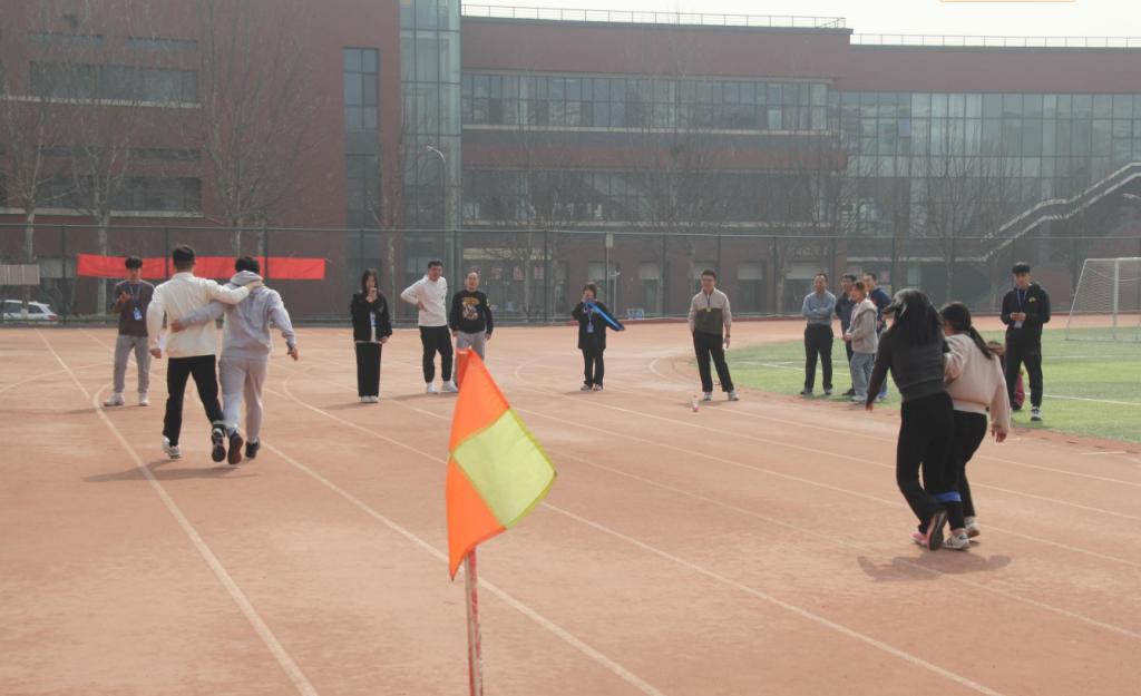 稳重·协作——两人三足。比赛以两人为一组,老师们挎着胳膊,揽着腰,经过短暂磨合后,速度开始加快,共同向着终点奔跑。“一二一,一二一!”虽然辛苦,但大家脸上的笑意不减,额头上的汗水是教师们团结协作、活力满满的见证。