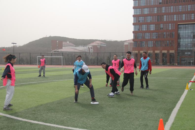 开场比赛由教工队对战学生队,同学们本着初生牛犊不怕虎的精神积极传接飞盘,老师们也拿出十二分的精神积极应战,为大家呈现了一场精妙绝伦的比赛,也激起了其他选手的参赛热情。师生赛的开展,让大家在工作、学习之余能够通过体育活动来促进交流,增进师生感情。除了师生赛,其他团队的表现也可圈可点,旋转的飞盘,奔驰的脚步,无不体现着学生团结协作、努力拼搏的意志品质,即使比赛临近尾声也绝不放弃!