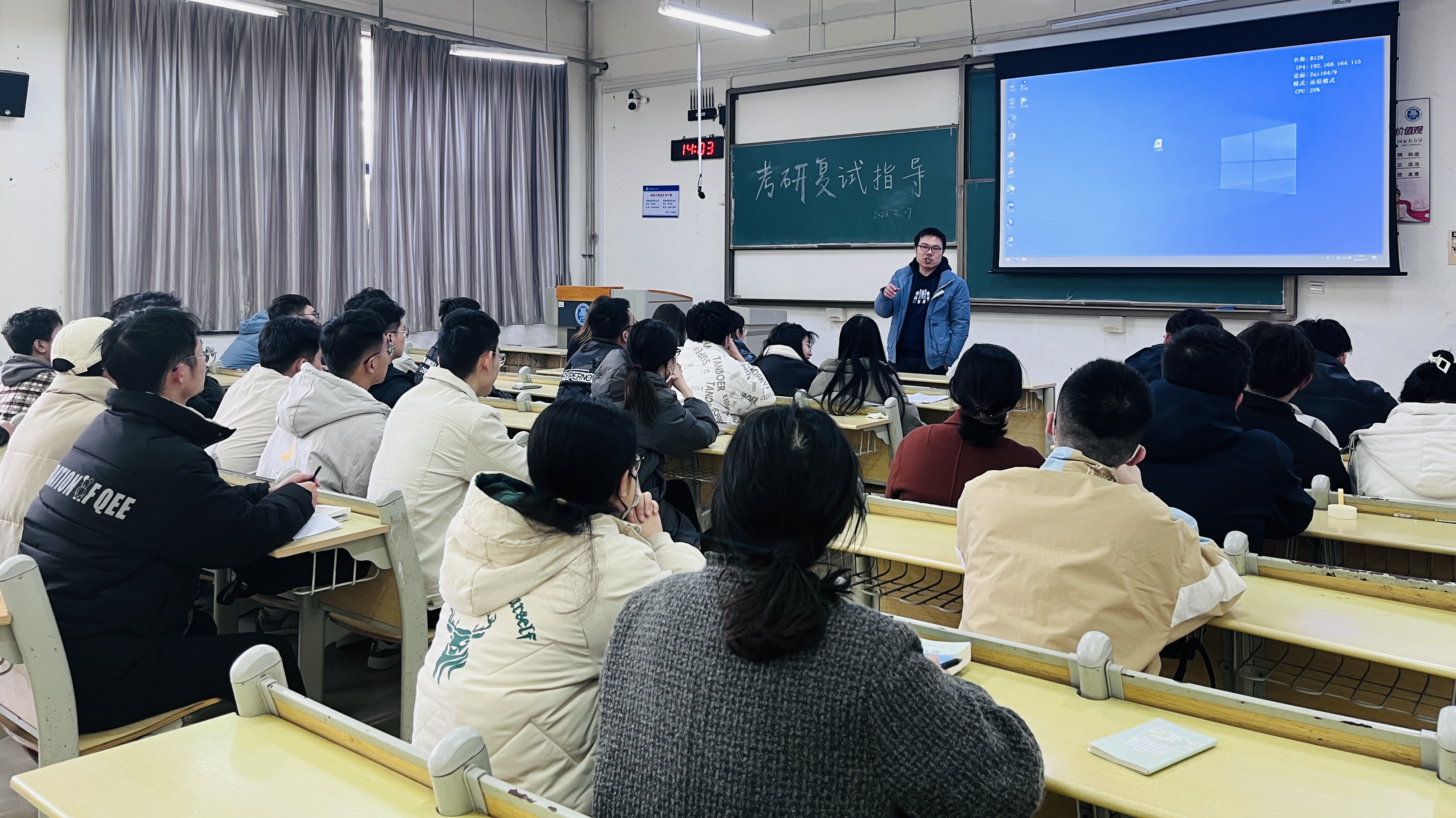 为进一步推进环境与市政工程学院2023届毕业生就业工作,做好考研指导服务,近日我院于主教学楼B124、B128和B129教室开展了2023届毕业生考研复试及调剂指导。本次活动邀请了环境与市政工程学院副院长刘龙、环境科学教研室教授、泰山学者肖宜华、给排水科学与工程教研室副教授蔡言安,学院研究生教学秘书任珂、辅导员何珊珊为同学们进行指导,共有120余名学生参加。