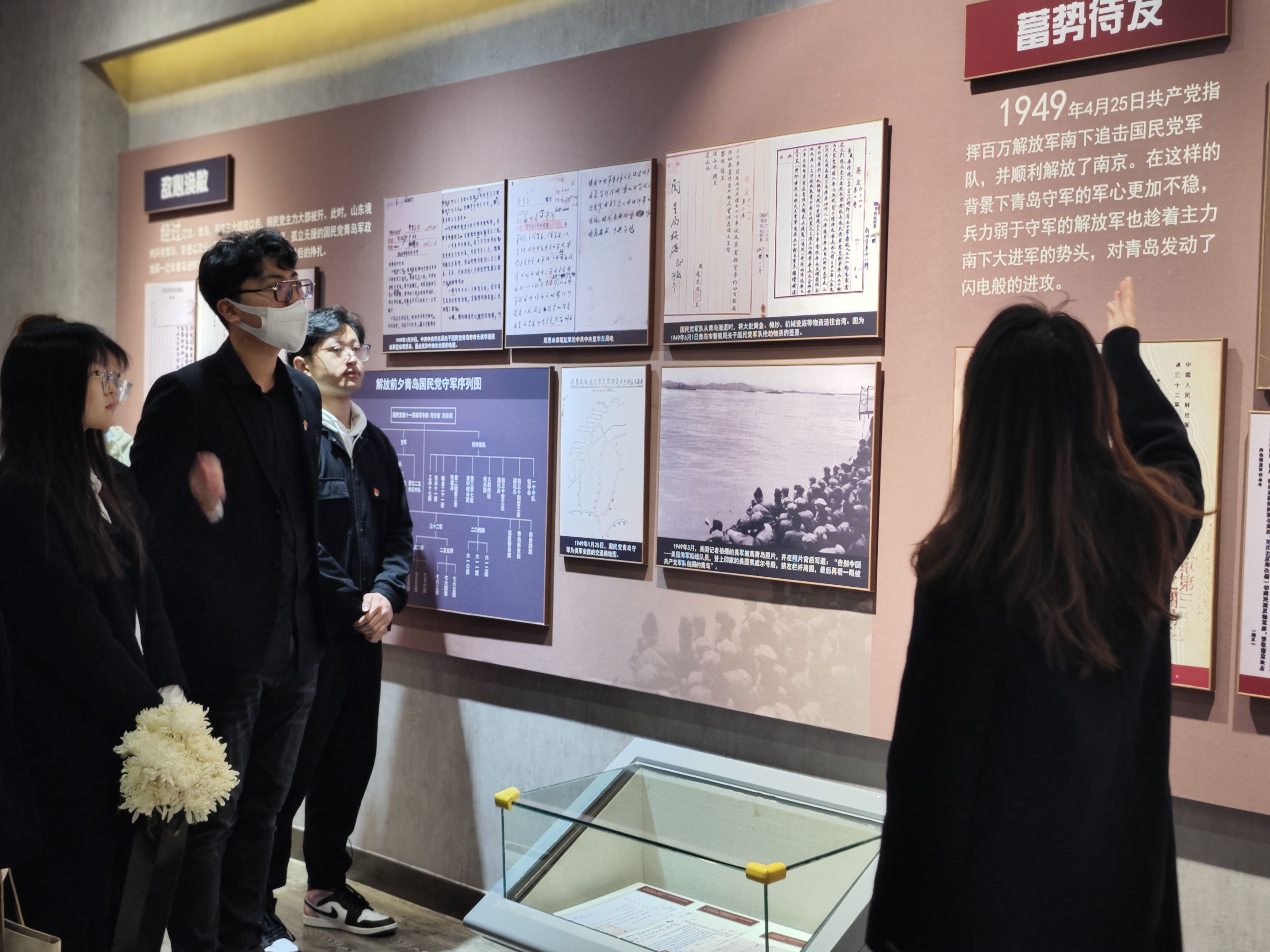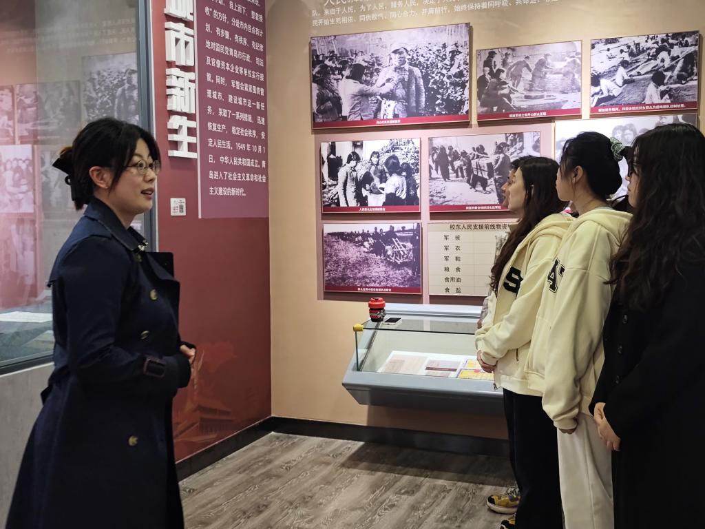 纪念馆内陈列的一张张图片、一段段文字、一件件文物,直观地回顾了青岛人民曾经遭受的巨大苦难,生动地描绘出革命先烈们不畏牺牲、前赴后继的悲壮画卷,形象地展示了中国共产党带领青岛人民巩固新政权、奋进新时代的光辉历程,同学们时而陷入深思,时而驻足凝望,感受着先辈们崇高的革命情怀和砥砺奋进的革命精神。