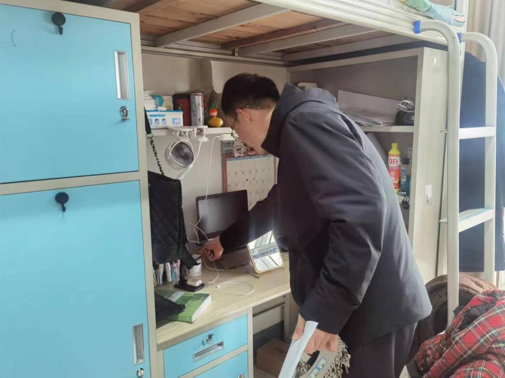 排查过程中,辅导员老师向同学们耐心讲解寝室消防安全相关规章制度并敦促班长、宿舍长、楼层长等进一步加强日常消防安全隐患的监督排查。从检查情况看,大多数宿舍均能做到规范用电,有较强的安全意识,未发现易燃易爆、违规电器和管制刀具等危险品,对于存在有学生在离开公寓后仍然将充电宝放在书桌上充电的情况予以了批评教育并现场开具整改通知书。
